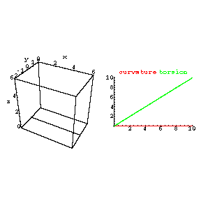 curvature = Curvature[ t ] and torsion = Torsion[ t ; n ] for t in [0,10].