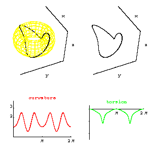 curvature (red) and torsion (green) functions for this curve, graphed over the