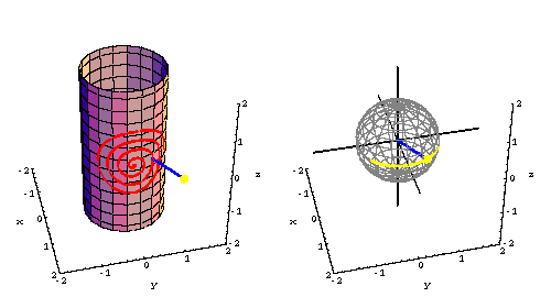 the cylinder surface x^2 + y^2 =1 is shown with
