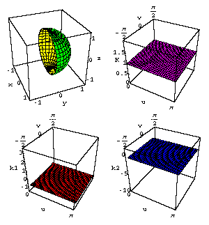 To the right of the spherical surface is a purple graph of its Gauss curvature