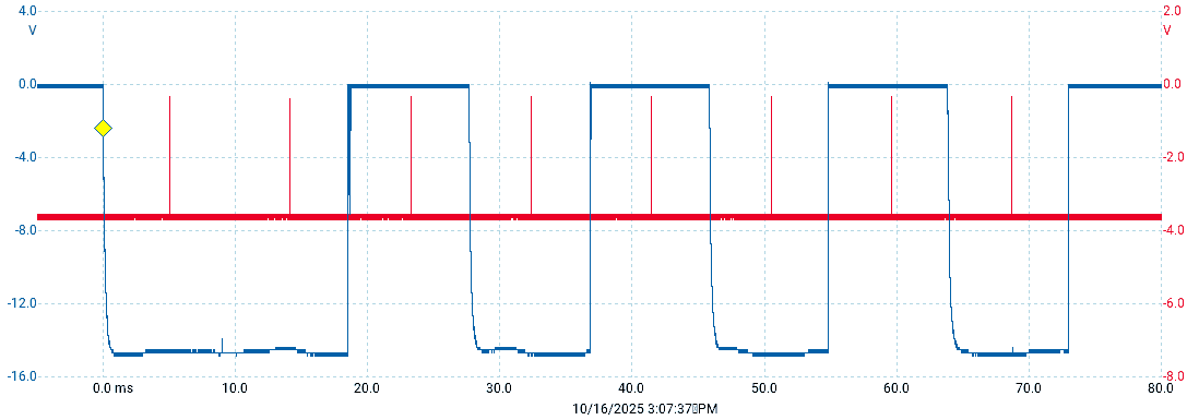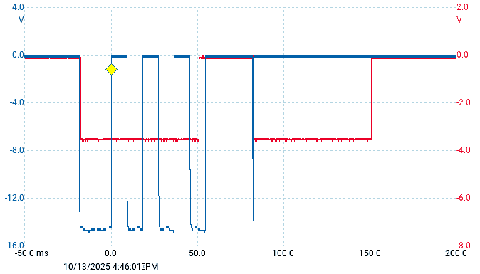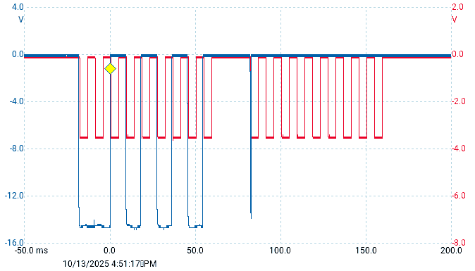 It is interesting to ask why the glitches from the mis-adjusted distributor had no impact on the Teletype when operating in local mode. We suspect that they were simply too short to be noticed by the electromechanical serial-to-parallel data receiver in the Teletype.