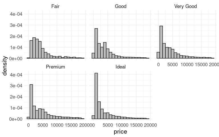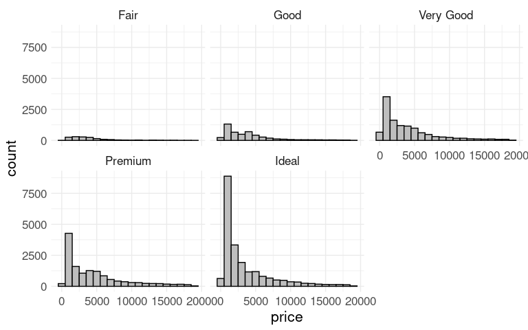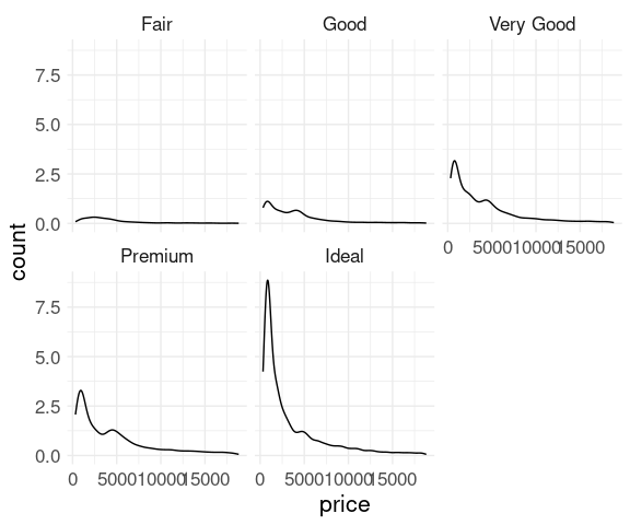 LS0tCnRpdGxlOiAiVmlzdWFsaXppbmcgRGlzdHJpYnV0aW9ucyIKb3V0cHV0OgogIGh0bWxfZG9jdW1lbnQ6CiAgICB0b2M6IHllcwogICAgY29kZV9mb2xkaW5nOiBzaG93CiAgICBjb2RlX2Rvd25sb2FkOiB0cnVlCi0tLQoKPGxpbmsgcmVsPSJzdHlsZXNoZWV0IiBocmVmPSJzdGF0NDU4MC5jc3MiIHR5cGU9InRleHQvY3NzIiAvPgo8IS0tIHRpdGxlIGJhc2VkIG9uIFdpbGtlJ3MgY2hhcHRlciAtLT4KCmBgYHtyIHNldHVwLCBpbmNsdWRlID0gRkFMU0UsIG1lc3NhZ2UgPSBGQUxTRX0Kc291cmNlKGhlcmU6OmhlcmUoInNldHVwLlIiKSkKa25pdHI6Om9wdHNfY2h1bmskc2V0KGNvbGxhcHNlID0gVFJVRSwgbWVzc2FnZSA9IEZBTFNFLAogICAgICAgICAgICAgICAgICAgICAgZmlnLmhlaWdodCA9IDUsIGZpZy53aWR0aCA9IDYsIGZpZy5hbGlnbiA9ICJjZW50ZXIiKQoKc2V0LnNlZWQoMTIzNDUpCmxpYnJhcnkoZHBseXIpCmxpYnJhcnkoZ2dwbG90MikKbGlicmFyeShsYXR0aWNlKQpsaWJyYXJ5KGdyaWRFeHRyYSkKc291cmNlKGhlcmU6OmhlcmUoImRhdGFzZXRzLlIiKSkKYGBgCgoKIyMgSW50cm9kdWN0aW9uCgpPbmNlIHRoZXJlIGFyZSBtb3JlIHRoYW4gYSBoYW5kZnVsIG9mIG51bWVyaWMgZGF0YSB2YWx1ZXMgaXQgaXMgb2Z0ZW4KdXNlZnVsIHRvIHN0ZXAgYmFjayBhbmQgbG9vayBhdCB0aGUgX2Rpc3RyaWJ1dGlvbl8gb2YgdGhlIGRhdGEgdmFsdWVzOgoKKiBXaGVyZSBpcyB0aGUgYnVsayBvZiB0aGUgZGF0YSBsb2NhdGVkPwoKKiBJcyB0aGVyZSBhIHNpbmdsZSBhcmVhIG9mIGNvbmNlbnRyYXRpb24gb3IgYXJlIHRoZXJlIHNldmVyYWw/CgoqIElzIHRoZSBkYXRhIGRpc3RyaWJ1dGlvbiBzeW1tZXRyaWMgb3IgaXMgaXQgc2tld2VkLCBpLmUuIHRyYWlscyBvZmYKICBtb3JlIHNsb3dseSBpbiBvbmUgZGlyZWN0aW9uIG9yIGFub3RoZXI/CgoqIEFyZSB0aGVyZSBleHRyZW1lLCBvciBvdXRseWluZywgdmFsdWVzPwoKKiBBcmUgdGhlcmUgYW55IHN1c3BpY2lvdXMgb3IgaW1wb3NzaWJsZSB2YWx1ZXM/CgoqIEFyZSB0aGVyZSBnYXBzIGluIHRoZSBkYXRhPwoKKiBJcyB0aGVyZSByb3VuZGluZywgZS5nLiB0byBpbnRlZ2VyIHZhbHVlcywgb3IgX2hlYXBpbmdfLCBpLmUuIGEKICBmZXcgcGFydGljdWxhciB2YWx1ZXMgb2NjdXIgdmVyeSBmcmVxdWVudGx5PwoKUGxvdHMgZm9yIHZpc3VhbGl6aW5nIGRpc3RyaWJ1dGlvbnMgaW5jbHVkZQoKKiBTdHJpcCBwbG90cy4KCiogSGlzdG9ncmFtcy4KCiogRGVuc2l0eSBwbG90cy4KCiogQm94IHBsb3RzLgoKKiBWaW9saW4gcGxvdHMuCgoqIFN3YXJtIHBsb3RzLgoKKiBEZW5zaXR5IHJpZGdlcwoKCiMjIFN0cmlwIFBsb3RzCgoKIyMjIFN0cmlwIFBsb3QgQmFzaWNzCgpBIHZhcmlhbnQgb2YgdGhlIGRvdCBwbG90IGlzIGtub3duIGFzIGEgX3N0cmlwIHBsb3RfLgoKQSBzdHJpcCBwbG90IGZvciB0aGUgY2l0eSB0ZW1wZXJhdHVyZSBkYXRhIGlzCgpgYGB7ciwgZmlnLmhlaWdodCA9IDIsIHdhcm5pbmcgPSBGQUxTRSwgY2xhc3Muc291cmNlID0gImZvbGQtaGlkZSJ9CnRobSA8LSB0aGVtZV9taW5pbWFsKCkgKwogICAgdGhlbWUodGV4dCA9IGVsZW1lbnRfdGV4dChzaXplID0gMTYpKQpnZ3Bsb3QoY2l0eXRlbXBzKSArCiAgICBnZW9tX3BvaW50KGFlcyh4ID0gdGVtcCwgeSA9ICJBbGwiKSkgKwogICAgdGhtICsKICAgIHRoZW1lKGF4aXMudGl0bGUueSA9IGVsZW1lbnRfYmxhbmsoKSwKICAgICAgICAgIGF4aXMudGV4dC55ID0gZWxlbWVudF9ibGFuaygpKQpgYGAKClRoZSBzdHJpcCBwbG90IGNhbiByZXZlYWwgZ2FwcyBhbmQgb3V0bGllcnMuCgpBZnRlciBsb29raW5nIGF0IHRoZSBwbG90IHdlIG1pZ2h0IHdhbnQgdG8gZXhhbWluZSB0aGUgaGlnaCBhbmQKbG93IHZhbHVlczoKCmBgYHtyfQpmaWx0ZXIoY2l0eXRlbXBzLCB0ZW1wID4gODUpCmZpbHRlcihjaXR5dGVtcHMsIHRlbXAgPCAxMCkKYGBgCgpGb3IgdGhlIGVydXB0aW9uIGR1cmF0aW9ucyBpbiB0aGUgYGZhaXRoZnVsYCBkYXRhIGEgc3RyaXAgcGxvdCBzaG93cwp0aGUgdHdvIG1vZGVzIGFyb3VuZCAyIGFuZCA0IG1pbnV0ZXM6CgpgYGB7ciwgZmlnLmhlaWdodCA9IDIsIHdhcm5pbmcgPSBGQUxTRSwgY2xhc3Muc291cmNlID0gImZvbGQtaGlkZSJ9CmdncGxvdChmYWl0aGZ1bCkgKwogICAgZ2VvbV9wb2ludChhZXMoeCA9IGVydXB0aW9ucywgeSA9ICJBbGwiKSkgKwogICAgdGhtICsKICAgIHRoZW1lKGF4aXMudGl0bGUueSA9IGVsZW1lbnRfYmxhbmsoKSwKICAgICAgICAgIGF4aXMudGV4dC55ID0gZWxlbWVudF9ibGFuaygpKQpgYGAKCgojIyMgTXVsdGlwbGUgR3JvdXBzCgpTdHJpcCAgcGxvdHMgYXJlIG1vc3QgdXNlZnVsIGZvciBzaG93aW5nIHN1YnNldHMgY29ycmVzcG9uZGluZyB0byBhCmNhdGVnb3JpY2FsIHZhcmlhYmxlLgoKQSBzdHJpcCBwbG90IGZvciB0aGUgeWllbGRzIGZvciBkaWZmZXJlbnQgdmFyaWV0aWVzIGluIHRoZSBiYXJsZXkgZGF0YQppcwoKYGBge3IsIGNsYXNzLnNvdXJjZSA9ICJmb2xkLWhpZGUifQpnZ3Bsb3QoYmFybGV5KSArCiAgICBnZW9tX3BvaW50KGFlcyh4ID0geWllbGQsIHkgPSB2YXJpZXR5KSkgKwogICAgdGhlbWVfbWluaW1hbCgpICsKICAgIHRobQpgYGAKCgojIyMgU2NhbGFiaWxpdHkKClNjYWxhYmlsaXR5IGluIHRoaXMgZm9ybSBpcyBsaW1pdGVkIGR1ZSB0byBvdmVyLXBsb3R0aW5nLgoKQSBzaW1wbGUgc3RyaXAgcGxvdCBvZiBgcHJpY2VgIHdpdGhpbiB0aGUgZGlmZmVyZW50IGBjdXRgIGxldmVscyBpbgp0aGUgYGRpYW1vbmRzYCBkYXRhIGlzIG5vdCB2ZXJ5IGhlbHBmdWw6CgpgYGB7ciwgY2xhc3Muc291cmNlID0gImZvbGQtaGlkZSJ9CmdncGxvdChkaWFtb25kcykgKwogICAgZ2VvbV9wb2ludChhZXMoeCA9IHByaWNlLCB5ID0gY3V0KSkgKwogICAgdGhtICsKICAgIHRoZW1lKGF4aXMudGl0bGUueSA9IGVsZW1lbnRfYmxhbmsoKSkKYGBgCgpTZXZlcmFsIGFwcHJvYWNoZXMgYXJlIGF2YWlsYWJsZSB0byByZWR1Y2UgdGhlIGltcGFjdCBvZiBvdmVyLXBsb3R0aW5nOgoKKiByZWR1Y2UgdGhlIHBvaW50IHNpemU7CgoqIHJhbmRvbSBkaXNwbGFjZW1lbnQgb2YgcG9pbnRzLCBjYWxsZWQgX2ppdHRlcmluZ187CgoqIG1ha2luZyB0aGUgcG9pbnRzIHRyYW5zbHVjZW50LCBvciBfYWxwaGEgYmxlbmRpbmdfLgoKQ29tYmluaW5nIGFsbCB0aHJlZSBmb3IgZXhhbWluaW5nIGBwcmljZWAgd2l0aGluIGBjdXRgIGZvciB0aGUKYGRpYW1vbmRzYCBkYXRhIHByb2R1Y2VzCgpgYGB7ciwgY2xhc3Muc291cmNlID0gImZvbGQtaGlkZSJ9CmdncGxvdChkaWFtb25kcykgKwogICAgZ2VvbV9wb2ludChhZXMoeCA9IHByaWNlLCB5ID0gY3V0KSwKICAgICAgICAgICAgICAgc2l6ZSA9IDAuMiwKICAgICAgICAgICAgICAgcG9zaXRpb24gPSBwb3NpdGlvbl9qaXR0ZXIod2lkdGggPSAwKSwKICAgICAgICAgICAgICAgYWxwaGEgPSAwLjIpICsKICAgIHRobSArIHRoZW1lKGF4aXMudGl0bGUueSA9IGVsZW1lbnRfYmxhbmsoKSkKYGBgCgpTa2V3bmVzcyBvZiB0aGUgcHJpY2UgZGlzdHJpYnV0aW9ucyBjYW4gYmUgc2VlbiBpbiB0aGlzIHBsb3QsIHRob3VnaApvdGhlciBhcHByb2FjaGVzIHdpbGwgc2hvdyB0aGlzIG1vcmUgY2xlYXJseS4KCkEgcGVjdWxpYXIgZmVhdHVyZSByZXZlbGVkIGJ5IHRoaXMgcGxvdCBpcyB0aGUgZ2FwIGJlbG93CjIwMDAuCgpFeGFtaW5pbmcgdGhlIHN1YnNldCB3aXRoIGBwcmljZSA8IDIwMDBgIHNob3dzIHRoZSBnYXAgaXMKcm91Z2hseSBzeW1tZXRyaWMgYXJvdW5kIDE1MDA6CgpgYGB7ciwgY2xhc3Muc291cmNlID0gImZvbGQtaGlkZSJ9CmdncGxvdChmaWx0ZXIoZGlhbW9uZHMsIHByaWNlIDwgMjAwMCkpICsKICAgIGdlb21fcG9pbnQoYWVzKHggPSBwcmljZSwgeSA9IGN1dCksCiAgICAgICAgICAgICAgIHNpemUgPSAwLjIsCiAgICAgICAgICAgICAgIHBvc2l0aW9uID0gcG9zaXRpb25faml0dGVyKHdpZHRoID0gMCksCiAgICAgICAgICAgICAgIGFscGhhID0gMC4yKSArCiAgICB0aG0gKwogICAgdGhlbWUoYXhpcy50aXRsZS55ID0gZWxlbWVudF9ibGFuaygpKQpgYGAKCkEgcGxvdCBhbG9uZyB0aGVzZSBsaW5lcyB3YXMgdXNlZCBvbiB0aGUgTmV3IFlvcmsgVGltZXMgW2Zyb250IHBhZ2UgZm9yCkZlYnJ1YXJ5IDIxLCAyMDIxXShgciBJTUcoIk5ZVC0yMDIxLTAyLTIxLmpwZWciKWApLgoKYGBge3IsIGVjaG8gPSBGQUxTRSwgb3V0LndpZHRoID0gIjU1JSJ9CmtuaXRyOjppbmNsdWRlX2dyYXBoaWNzKElNRygiTllULTIwMjEtMDItMjEuanBlZyIpKQpgYGAKCgojIyMgU29tZSBOb3RlcwoKKiBXaXRoIGEgZ29vZCBjb21iaW5hdGlvbiBvZiBwb2ludCBzaXplIGNob2ljZSwgaml0dGVyaW5nLCBhbmQgYWxwaGEKICBibGVuZGluZyB0aGUgc3RyaXAgcGxvdCBmb3IgZ3JvdXBzIG9mIGRhdGEgY2FuIHNjYWxlIHRvIHNldmVyYWwKICBodW5kcmVkIHRob3VzYW5kIG9ic2VydmF0aW9ucyBhbmQgdGVuIHRv