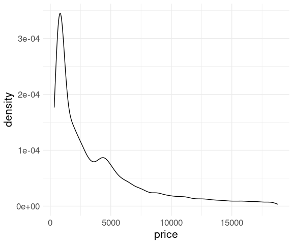 Examining the subset with price < 2000 shows the gap is roughly symmetric around 1500: