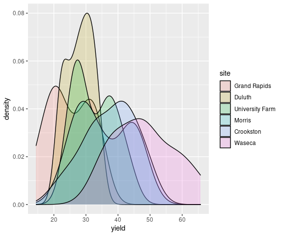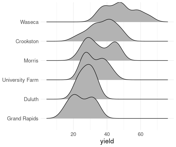 ggplot(mutate(barley, year = reorder(year, -yield))) +