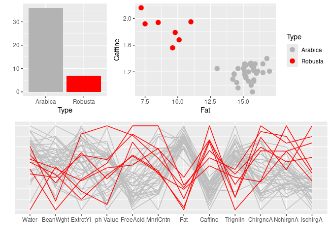 Unwin’s Fig 12.1 provides an ensemble graphic for a data set on the chemical composition of coffee samples: