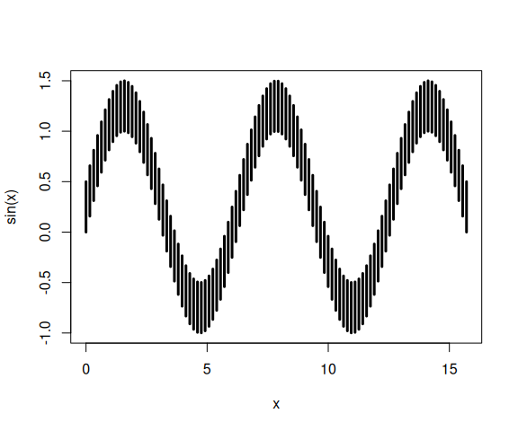 segments(x0 = x, y0 = sin(x), y1 = sin(x) + w, lwd = 3)