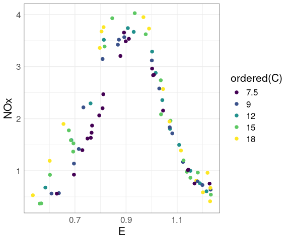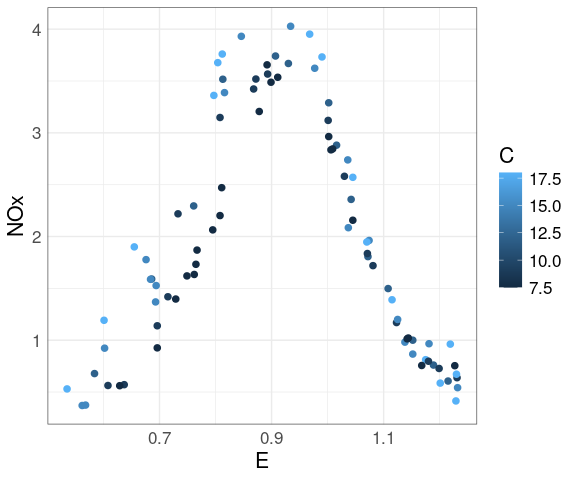 A goal is to understand the relationship between the pollutant NOx and the controllable variables E and C.