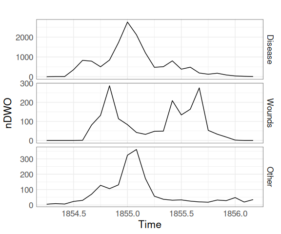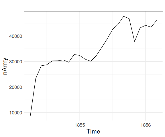 ## Month Year Army Disease Wounds Other Disease.rate Wounds.rate Other.rate